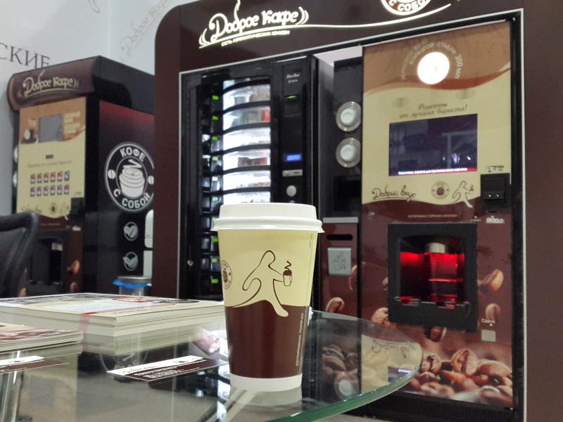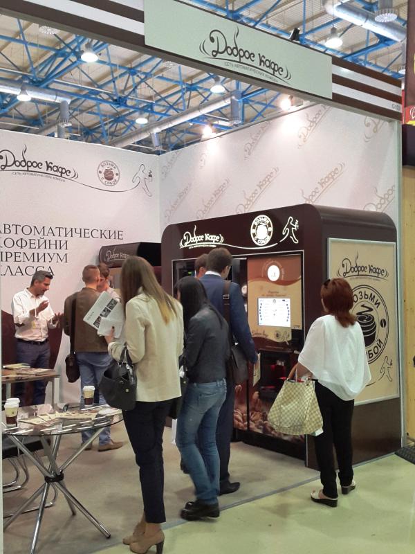 Наша компания представила на выставке BUYBREND-2015 франшизу автоматических кофеен "Доброе кафе" в формате кофе с собой, основанную на применении оборудования Westomatic (Великобритания) и отработанной рецептуры напитков из качественных ингредиентов.